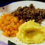 Haggis ist ein altes schottisches Gericht (inzwischen Nationalgericht), welches aus gehackten Schafs-Innereien, Hafermehl, Zwiebeln und Gewürzen besteht, die in einem Sachafsmagen gekocht, aber ohne diesen gegessen werden. Dazu werden traditionell Steckrüben und Kartoffeln/Kartollfelbrei („neeps and tatties“) serviert.
